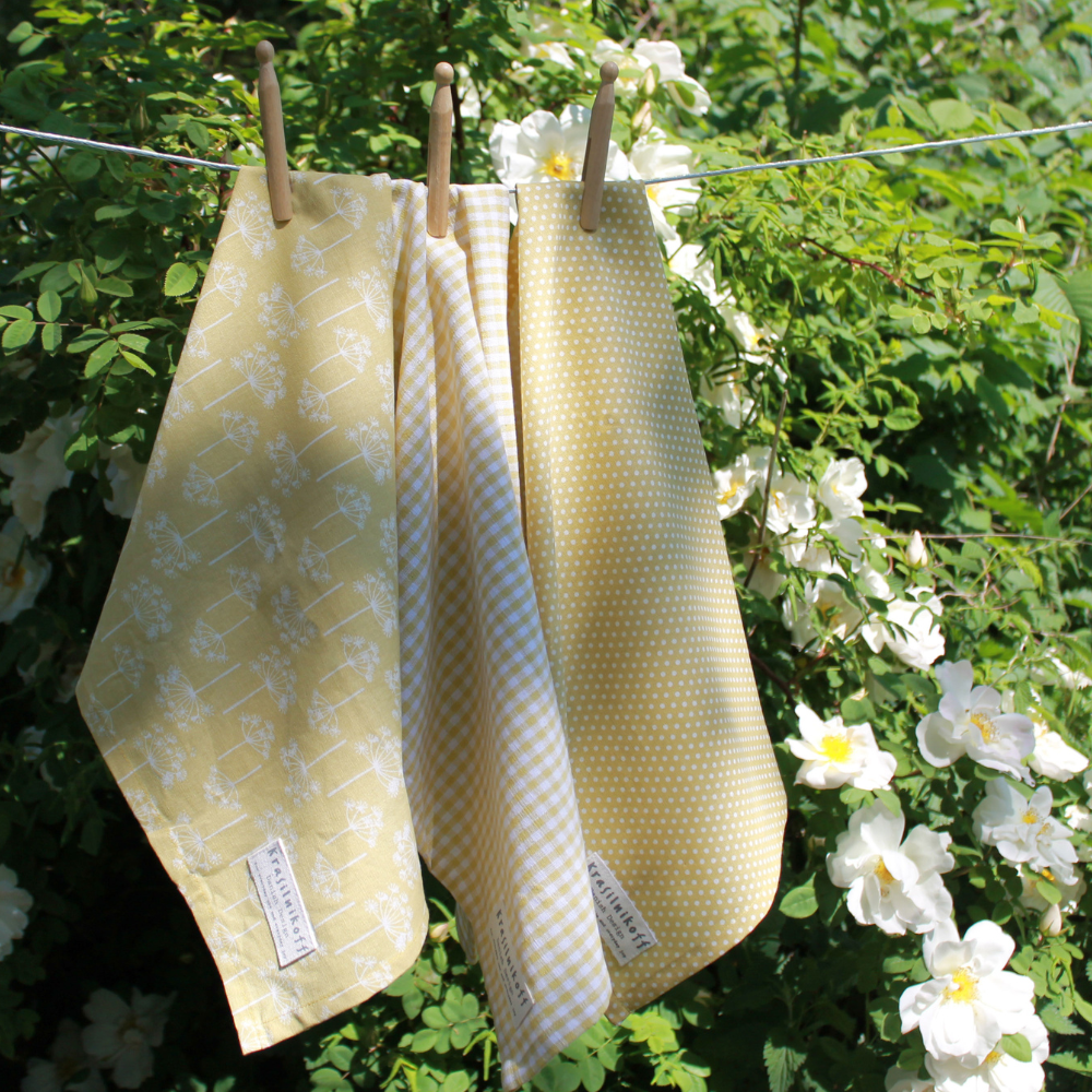 Für eine bessere Saugfähigkeit das Geschirrtuch vor der ersten Wäsche 24 Stunden in kaltem Wasser einweichen.