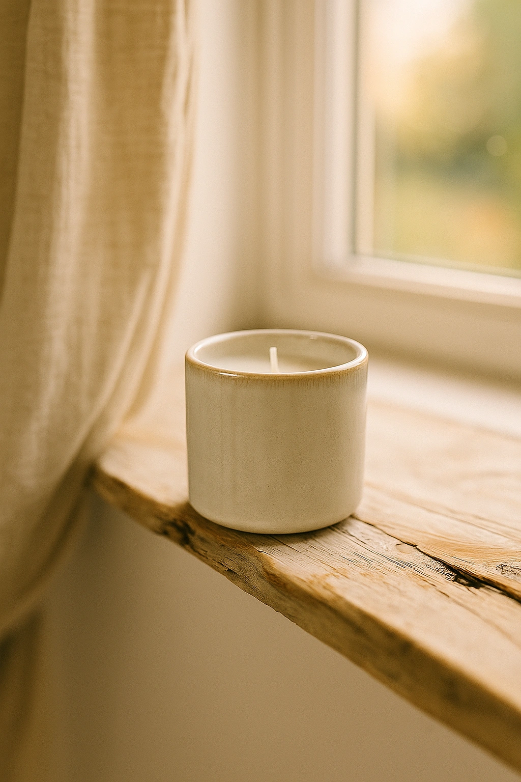 Kerze im Keramikbecher