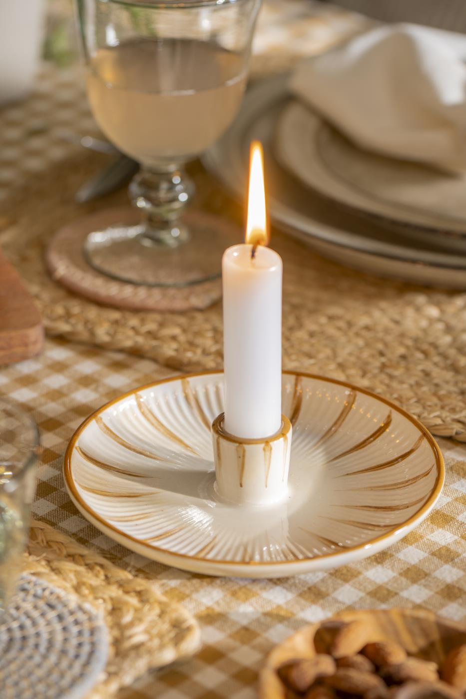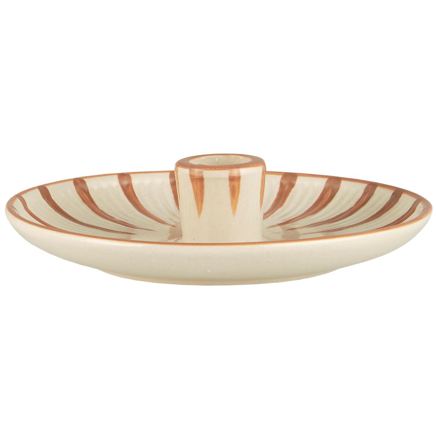 Kerzenhalter f/Stabkerze Steingut natur/braun gestreift handbemalt von Ib Laursen