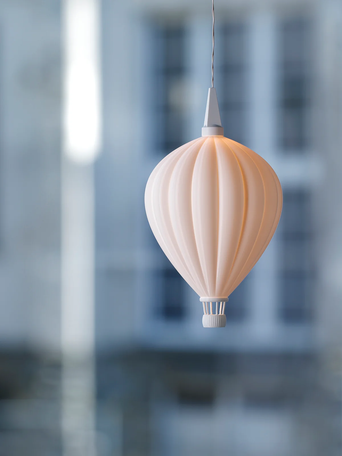 Ein kleiner Gruß vom Himmel – und ein echtes Highlight für jedes Kinderzimmer. Der Heißluftballon verbindet spielerische Leichtigkeit mit stilvollem Design. Die sanft geschwungenen, vertikalen Rillen sorgen dafür, dass das Licht weich gebrochen wird und der Raum in eine warme, verträumte Stimmung eintaucht.