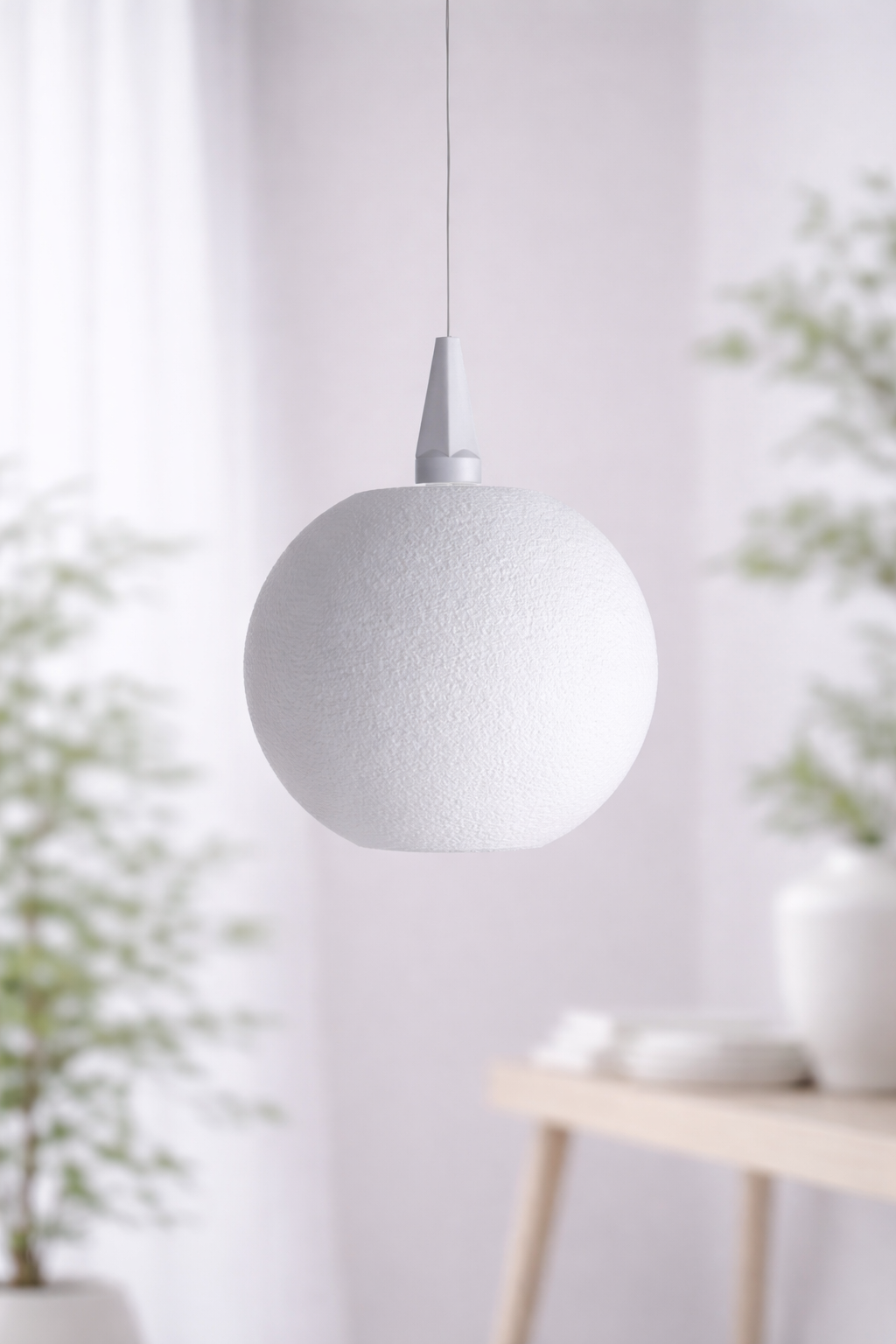 „Ida“ überzeugt durch ihre klare, nahtlose Kugelform, die an die stille Ausstrahlung des Mondes erinnert. Die fein strukturierte, samtige Oberfläche sorgt für eine gleichmäßige und weiche Lichtverteilung, die den Raum ruhig wirken lässt und eine behagliche Stimmung schafft. Ihre perfekte Symmetrie macht sie zu einem zeitlosen Designobjekt, das sich mühelos in moderne wie auch klassische Wohnstile einfügt.