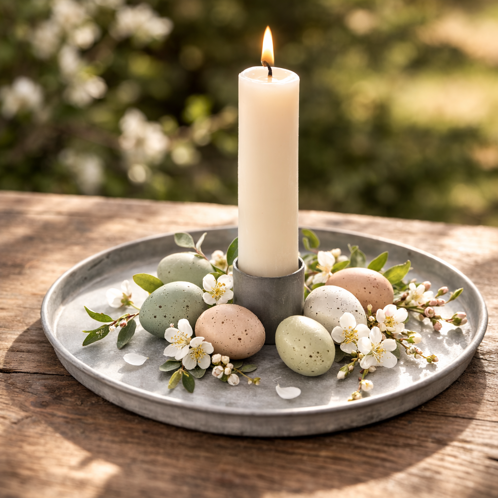 Die schlichte Form unterstreicht den ruhigen, nordischen Look und lässt Kerzen und Dekoration bewusst wirken.