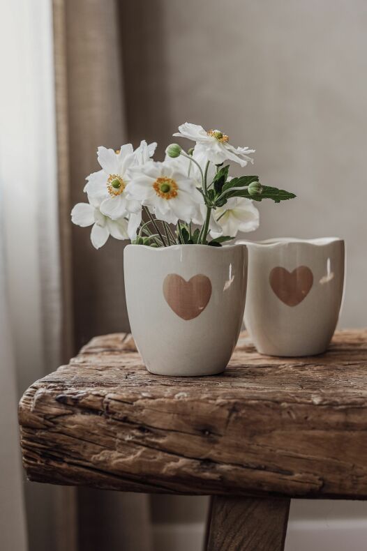 Der liebevoll gestaltete Majas Cottage Becher mit handgemaltem Herzmotiv steht nicht nur für Gemütlichkeit