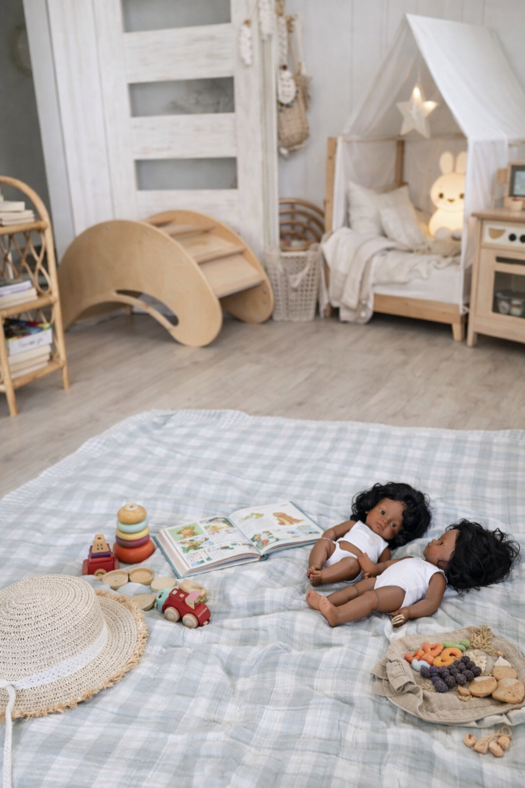 Leicht, weich und wunderbar vielseitig – unsere blau karierte Picknickdecke begleitet dich vom Spielplatz bis zum Sommerausflug ans Wasser.