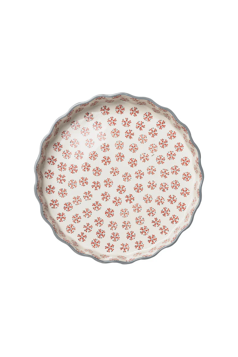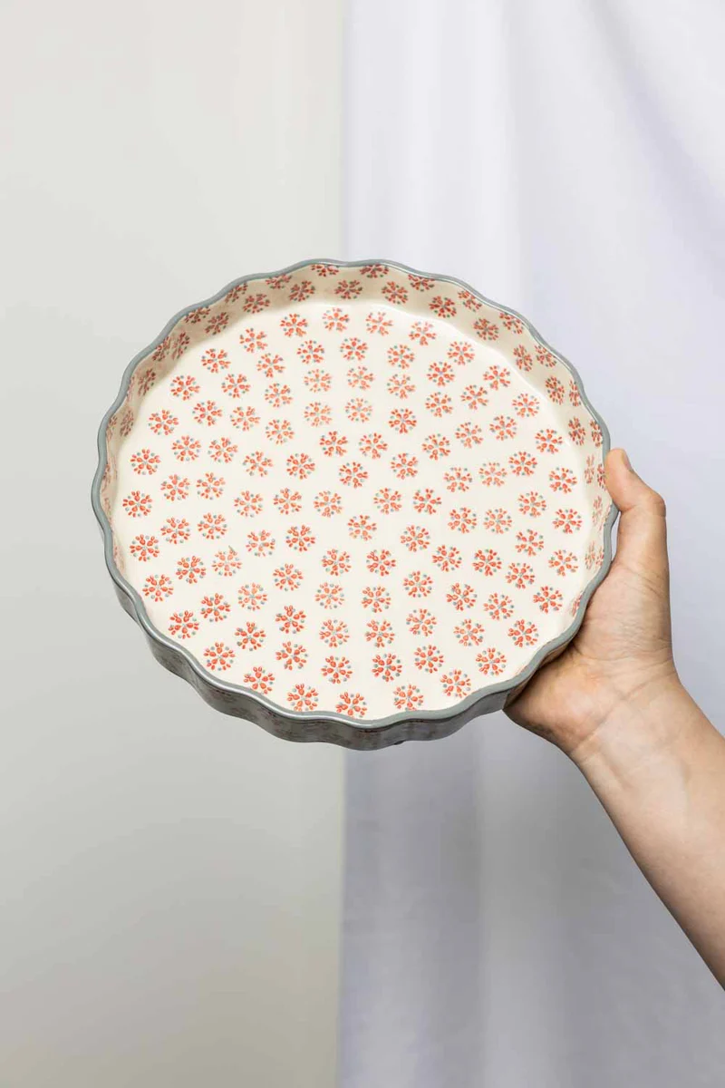 – egal ob Familie oder Freunde. Diese wunderschöne Quicheform aus Steinzeug mit handgestempeltem Print bietet Platz für köstliche Kreationen von süß bis herzhaft. Eine Apfeltarte mit Zimt oder doch lieber eine Spinatquiche mit Ziegenkäse? In dieser Form werden deine Rezeptideen knusprig lecker gebacken und du kannst sie deinen Liebsten stilecht servieren.