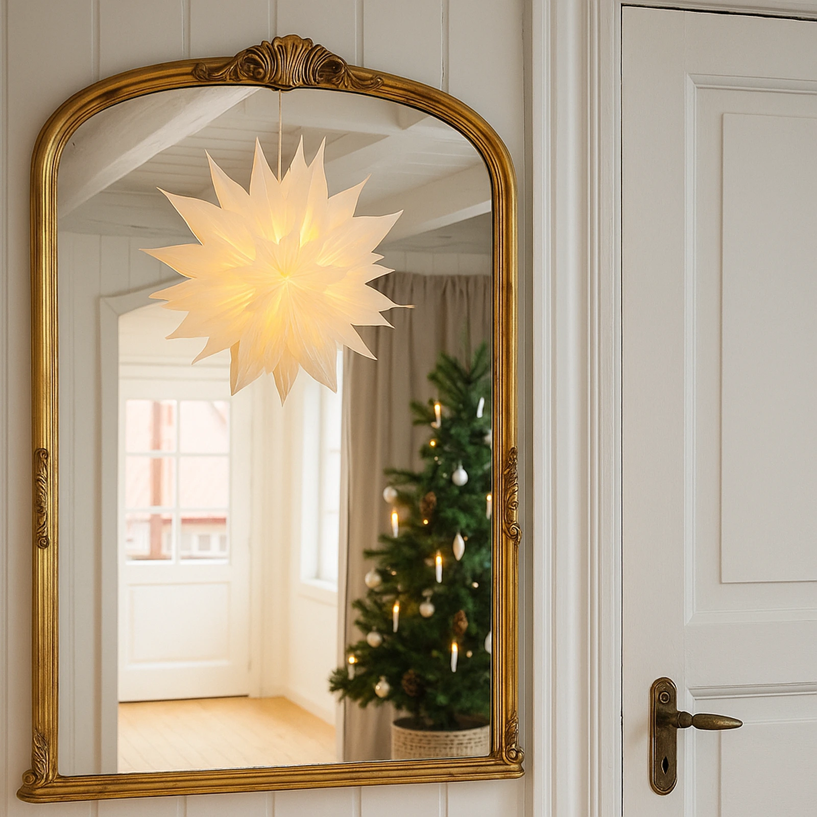 Stella Linea überzeugt mit klaren Linien und einem modernen, nordisch inspirierten Design. Der große Papierstern aus hochwertigem Pergamentpapier sorgt für eine warme, stimmungsvolle Beleuchtung und wird in jedem Raum zum eleganten Blickfang – perfekt für eine hyggelige Weihnachtszeit.