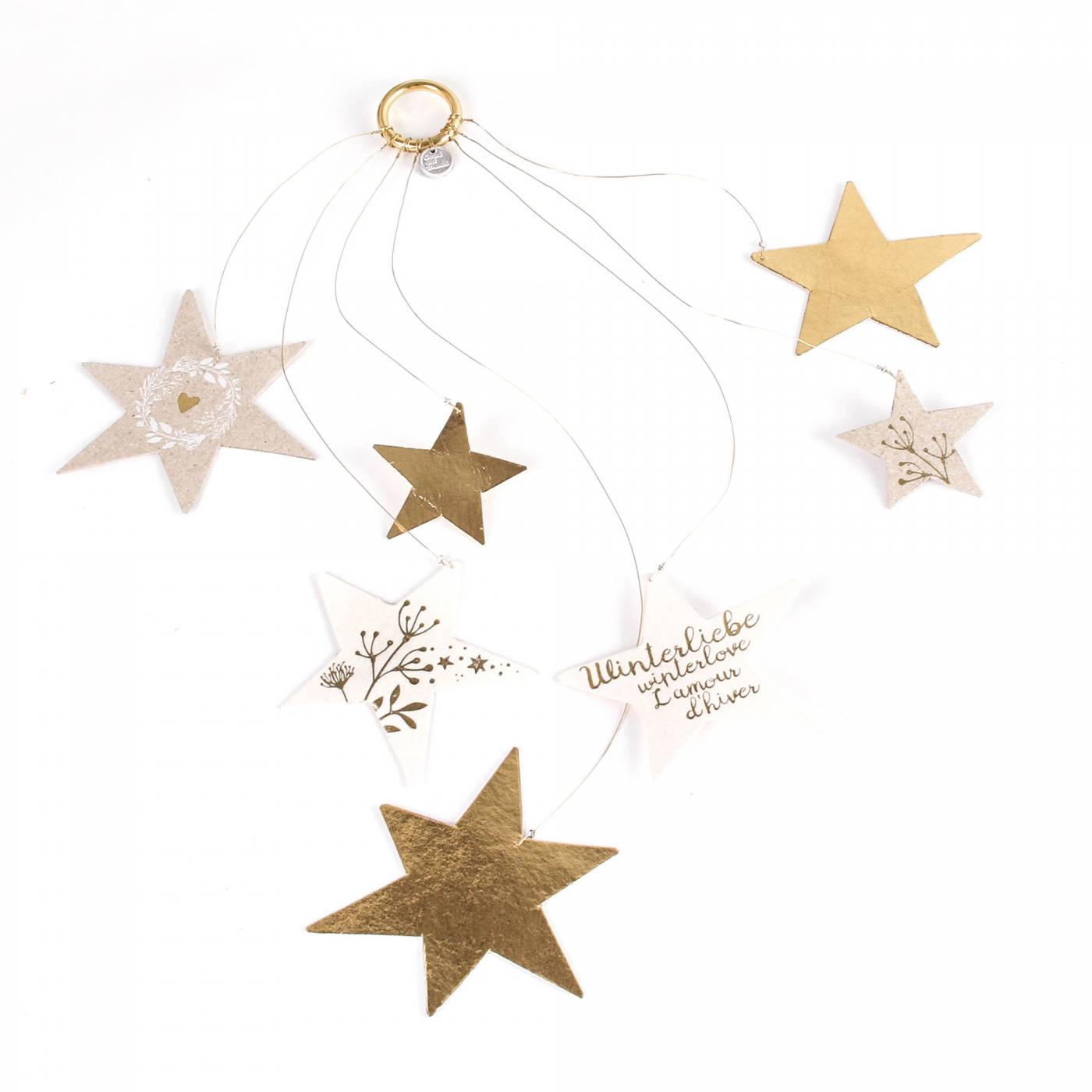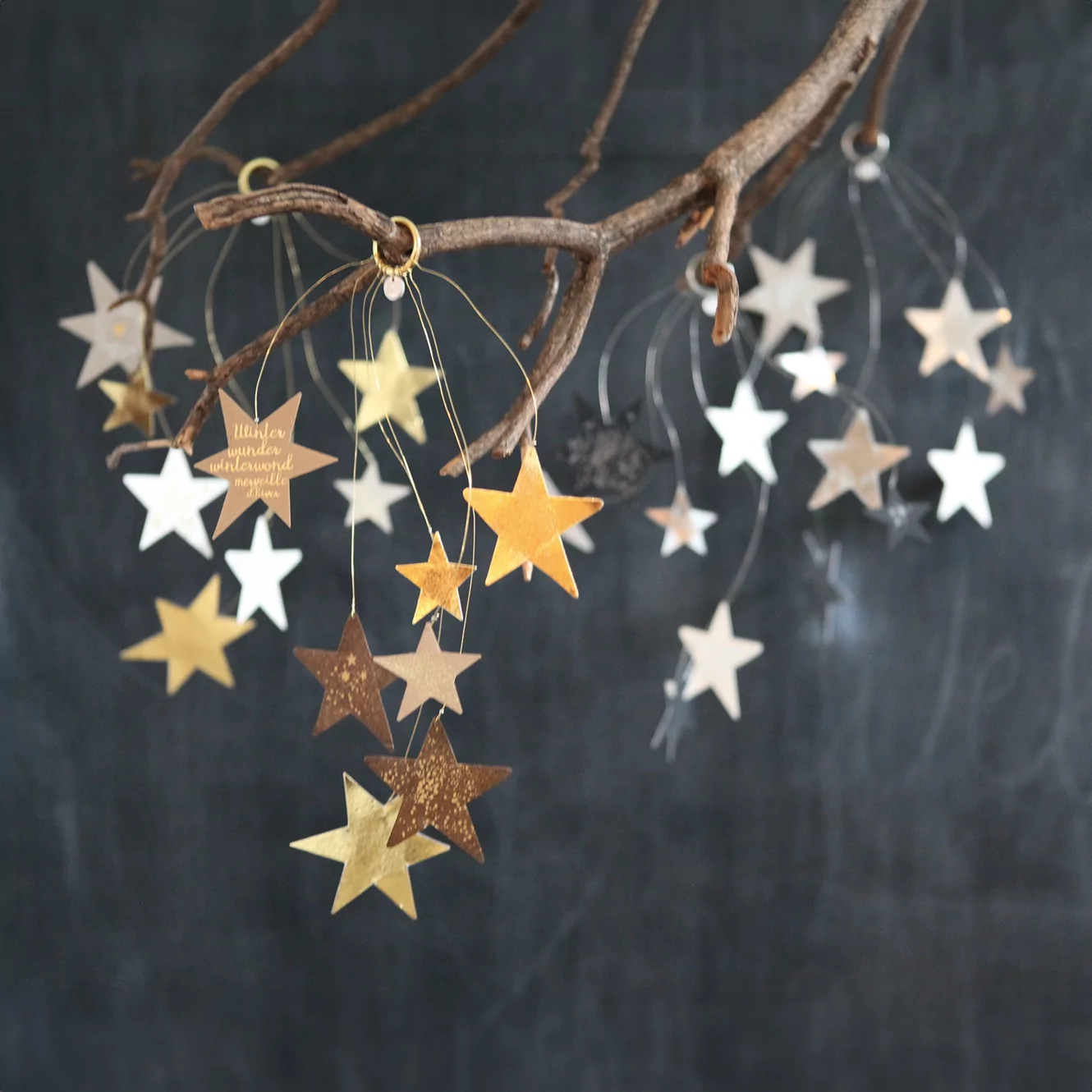 unterschiedliche Sterne, befestigt an einem Drahtring wirken wie ein kleiner Sternenregen