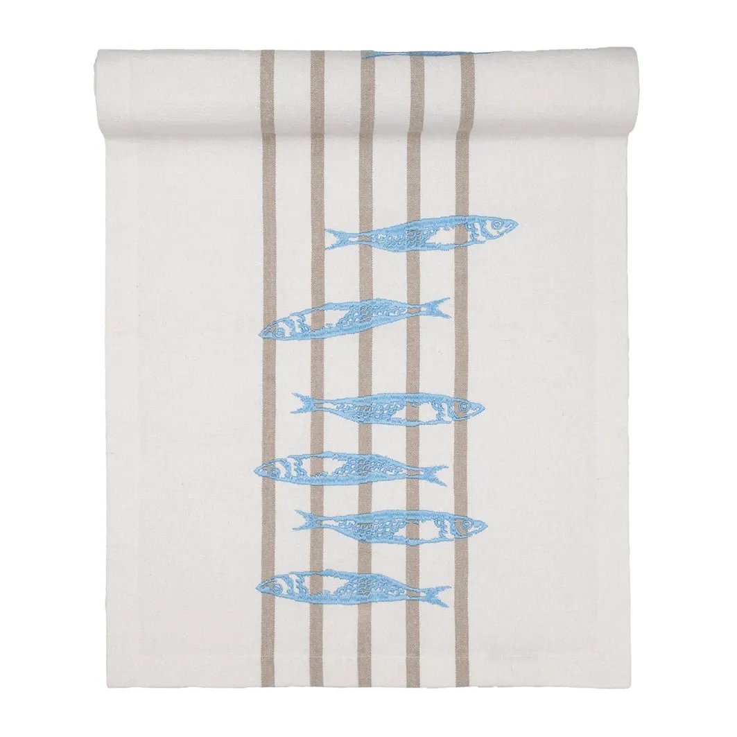 Tischläufer „Havn Sardines – Natural Light Blue“