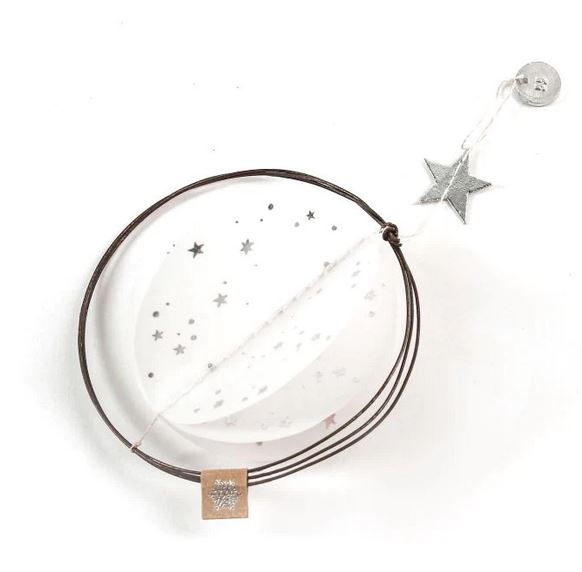 in Draht & Transparentpapier. Lässt sich auffalten und wird so zu dreidimensionalem Winterschmuck