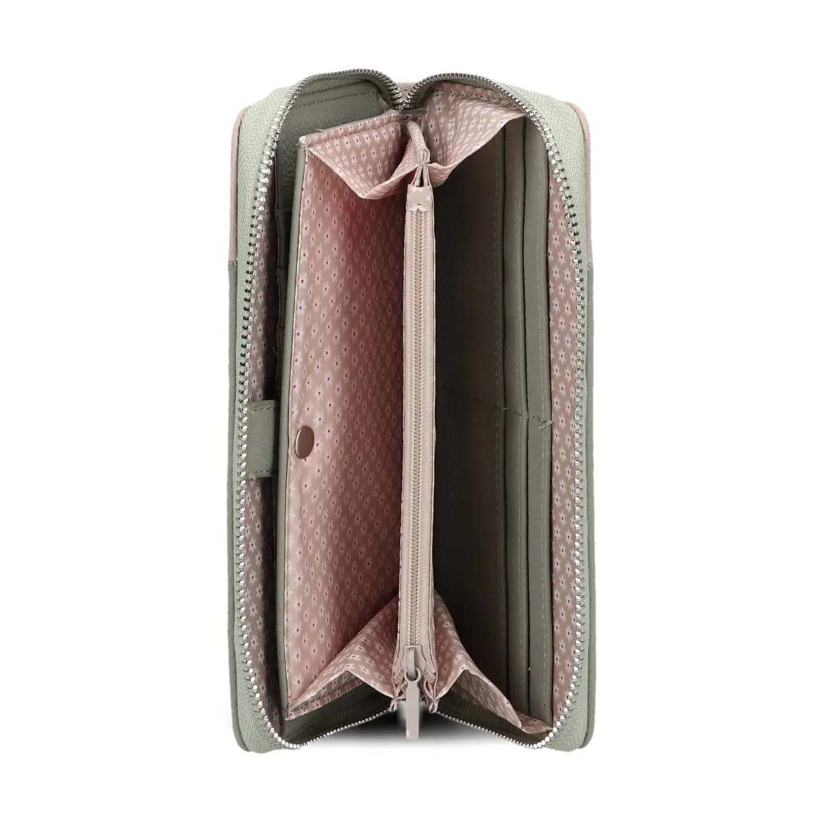 Der sanfte Salbeigrün-Ton kombiniert mit dem zarten Rosé verleiht der Geldbörse eine moderne, ruhige Ausstrahlung und passt perfekt zu natürlichen Farben und zeitlosen Taschen.