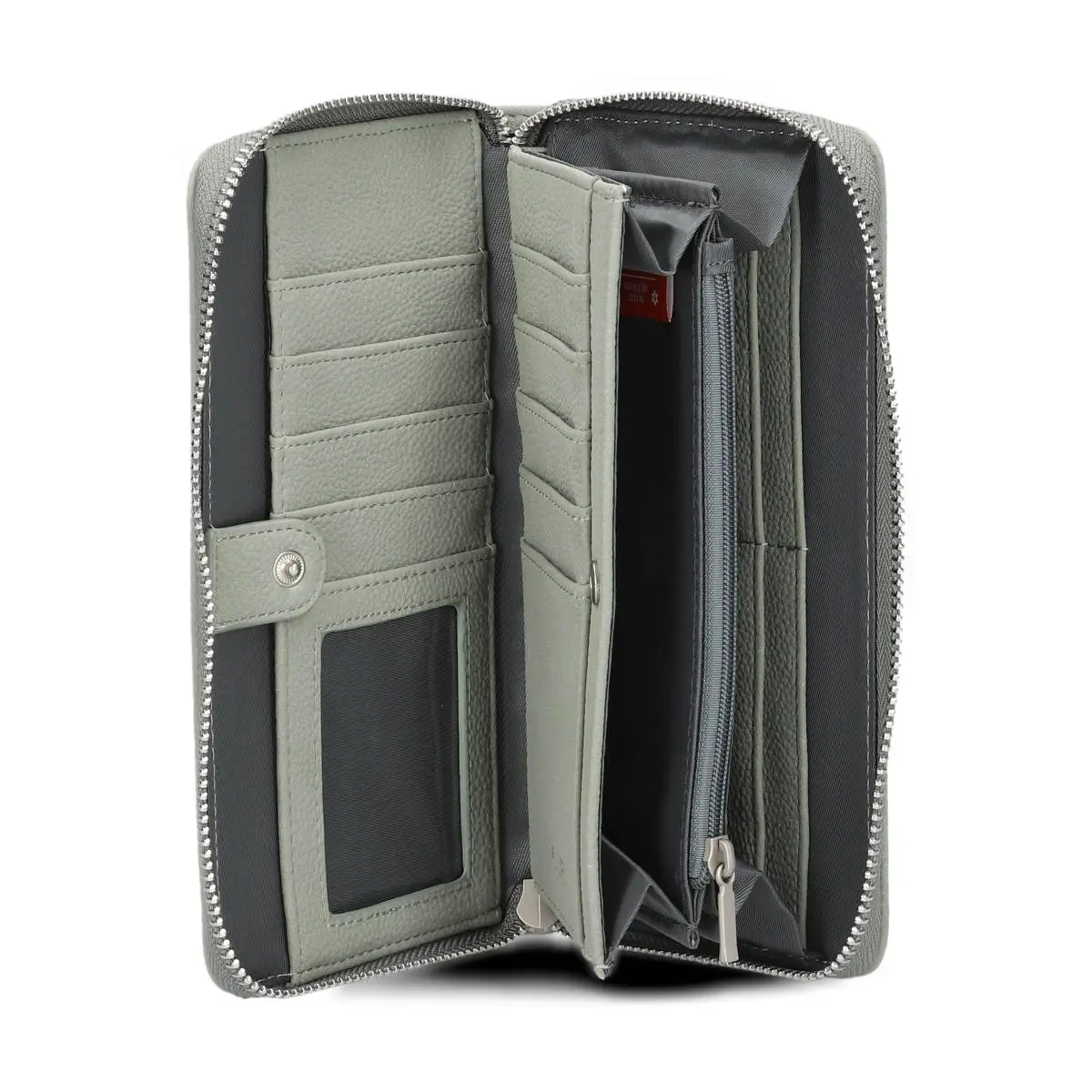 Ein separates Münzfach mit Reißverschluss hält Kleingeld sicher zusammen, während der umlaufende Reißverschluss das Portemonnaie zuverlässig verschließt und den Inhalt schützt.